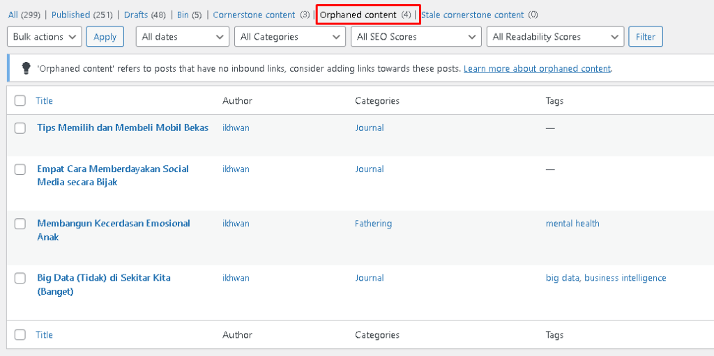 […] Baca Juga: Orphaned Content dalam WordPress. […]